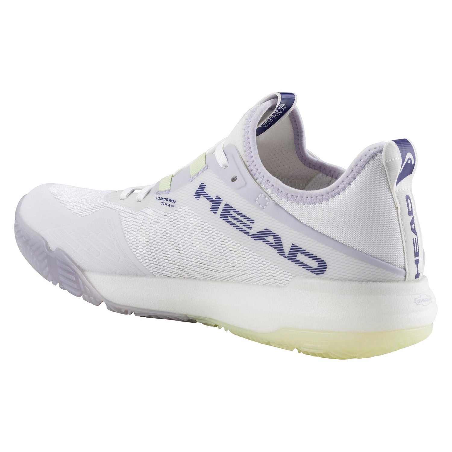 Het bovenwerk van de Head Motion Pro Padel Woman White/Lavender is vervaardigd uit lichtgewicht en ademend mesh. De 'sock fit' zorgt voor een nauwsluitende pasvorm dankzij het elastische materiaal, wat niet alleen extra comfort toevoegt maar ook voor verbeterde ondersteuning zorgt. Het gebied rond de tenen en voorvoet van de Head Motion Pro Padel Woman White/Lavender is voorzien van slijtvast rubber, waardoor de duurzaamheid van de schoen wordt verhoogd. De geïntegreerde bandjes over de middenvoet, verweven in het vetersysteem, houden je voet stevig op zijn plaats. De interne hielkap van TPU (thermoplastisch polyurethaan) biedt extra stevigheid en stabiliteit.