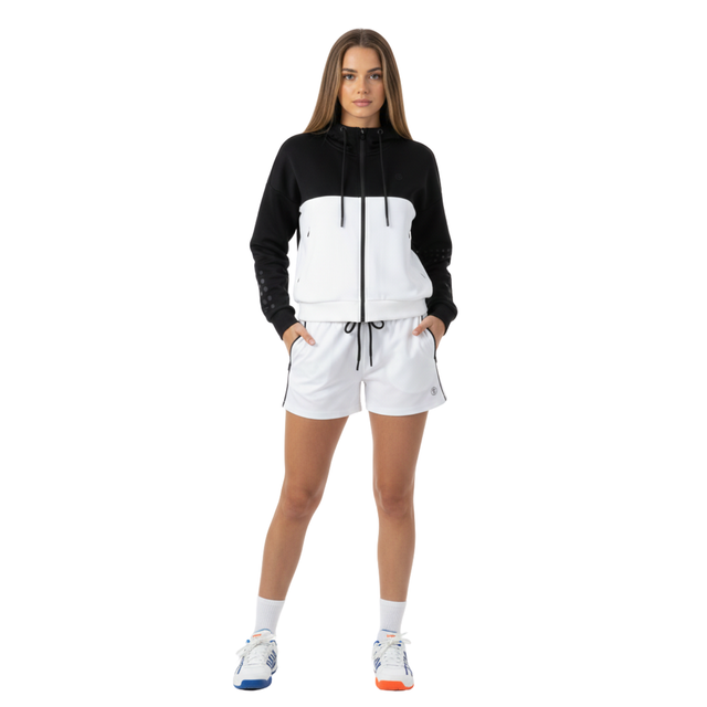 De By VP Dames Set bestaat uit het By VP Zip Jacket en de By VP Short Women en vormt samen een comfortabele en sportieve padeloutfit voor dames. Deze set is ideaal voor warming-ups, trainingen en momenten op en rond de baan.