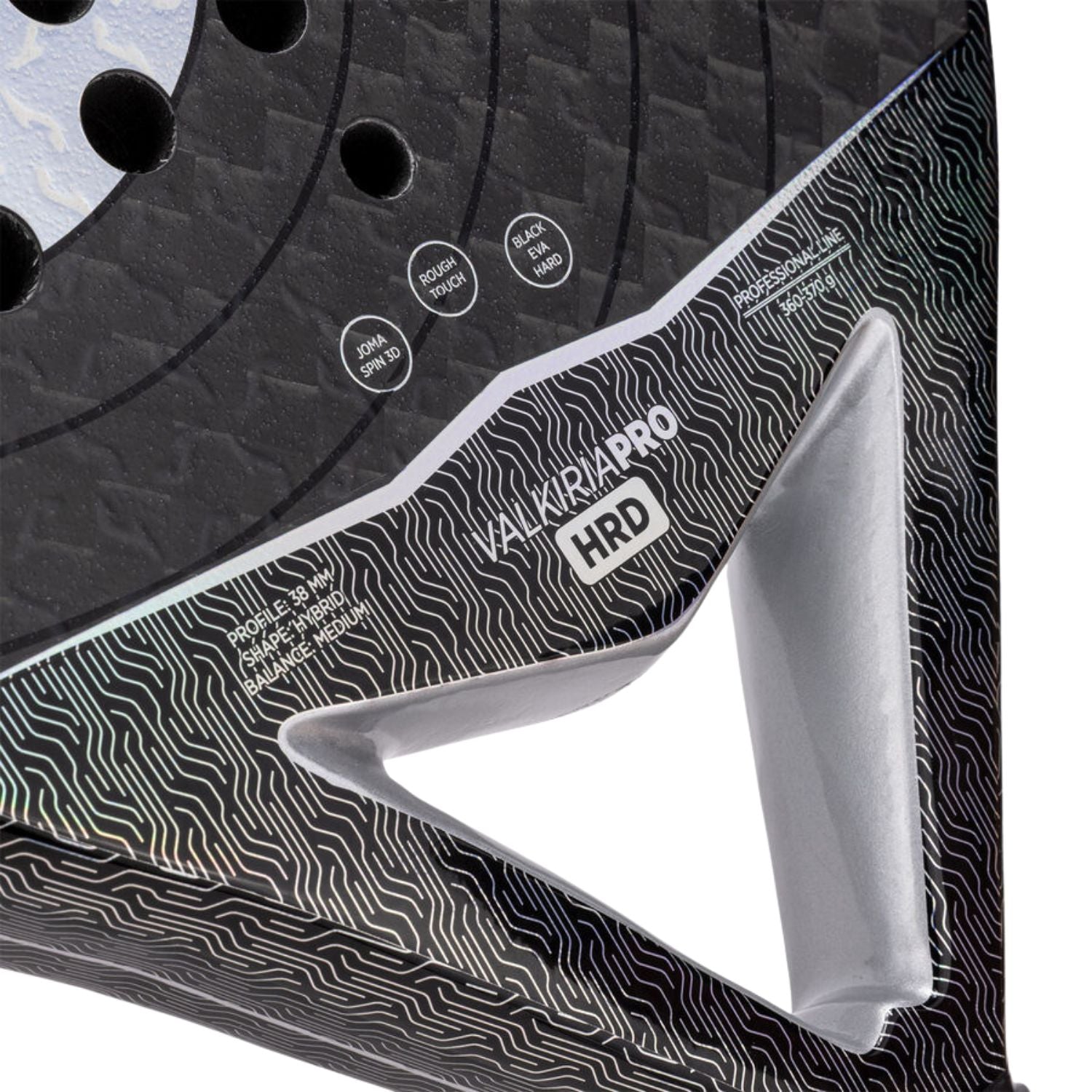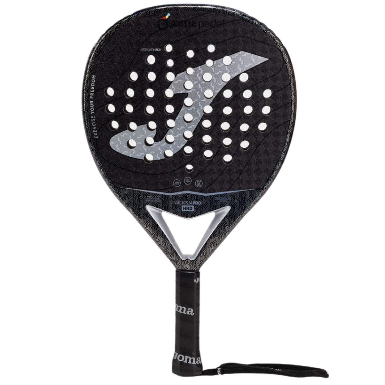 De Joma Valkiria Pro HRD 2026 is een controlerend padelracket uit de Valkiria Pro lijn van Joma, ontwikkeld voor gevorderde damesspeelsters. De ronde vorm, het 12K carbon frame en de harde kern geven dit racket een direct en scherp speelgevoel met maximale controle en precisie bij elk balcontact.